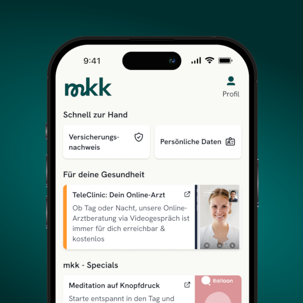 Hole dir jetzt die mkk App und erlebe deine Krankenkasse so nah wie nie zuvor. Kommuniziere jederzeit schnell und digital mit uns, empfange Nachrichten deiner Kundenberaterinnen und Berater und lade Ersatzbescheinigungen herunter. Entdecke außerdem exklusive Gesundheits-Apps wie Balloon, Femna und viele mehr – für deine Gesundheit, jederzeit und überall.