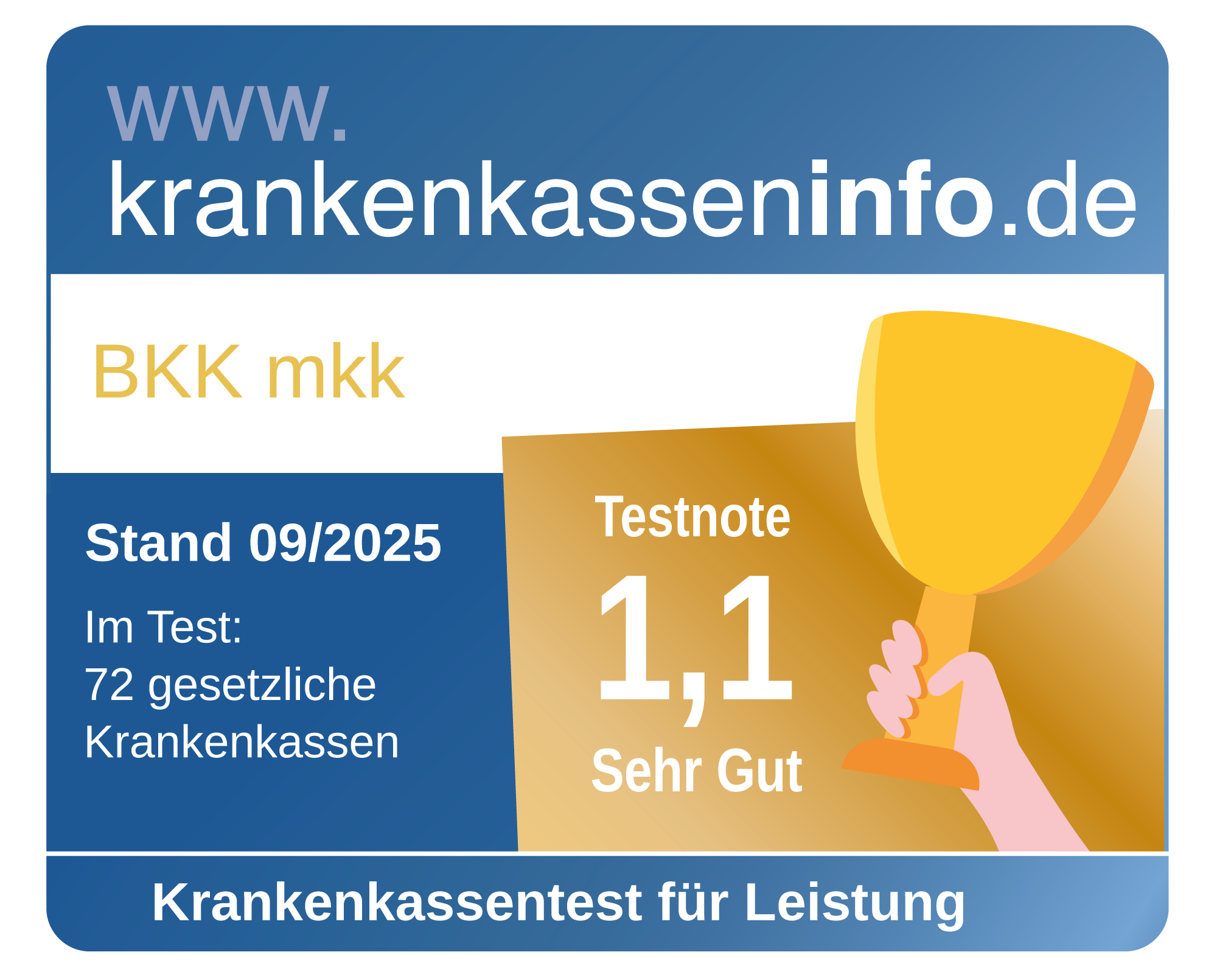 Geld sparen, von Top-Leistungen profitieren und alles bequem online regeln – dass das bei der mkk geht, bestätigen unabhängige Tests immer wieder.