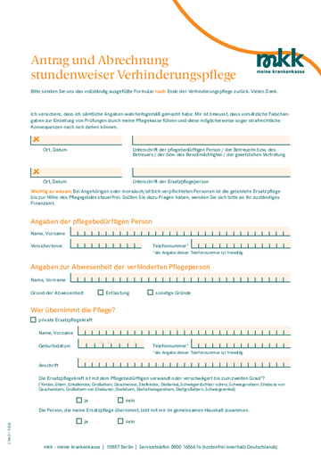 Antrag auf Verhinderungspflege / stundenweise und tageweise Abrechnung