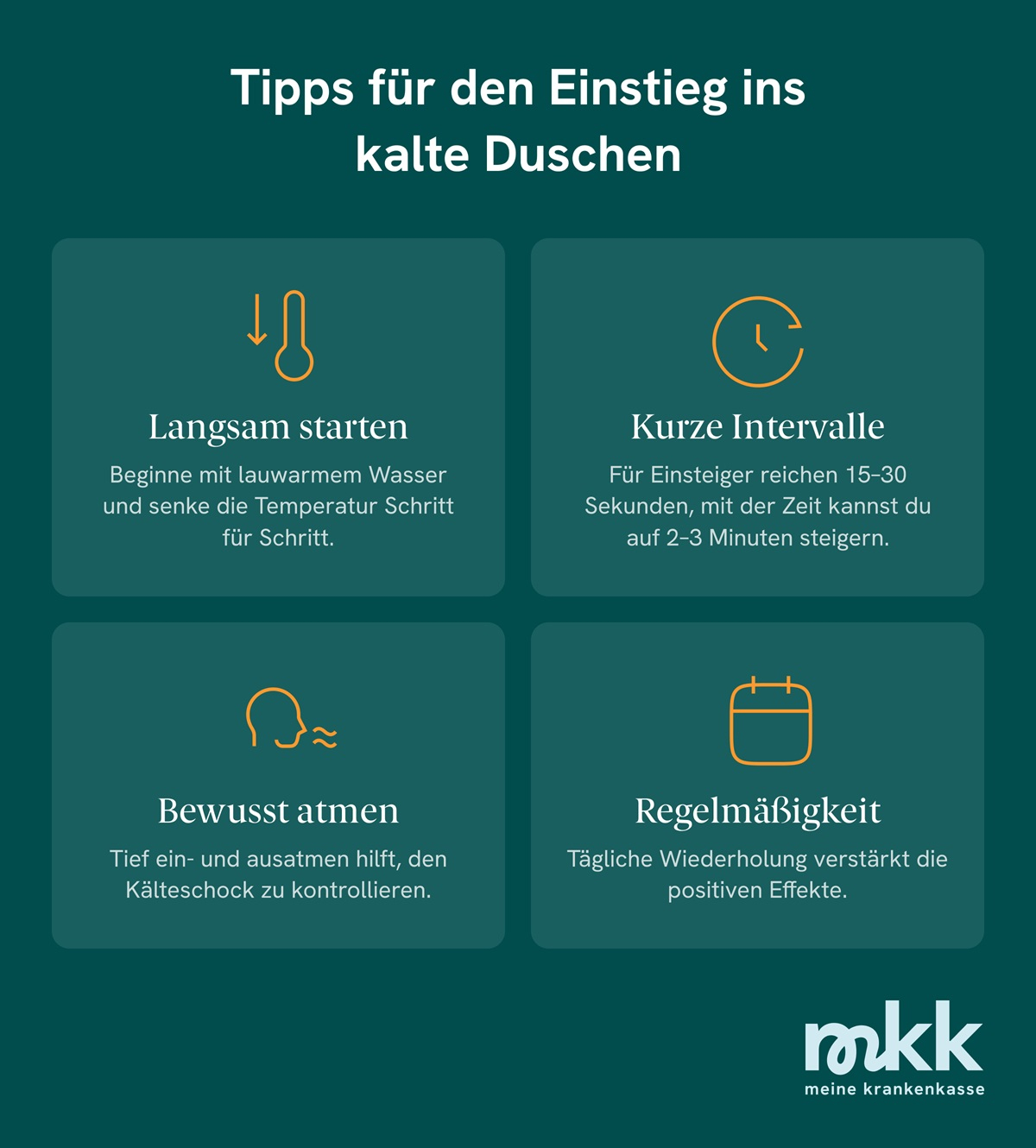 | Einstieg | Mit lauwarmem Wasser starten, Temperatur schrittweise senken | Der Körper braucht Zeit, um sich an Kälte zu gewöhnen. |