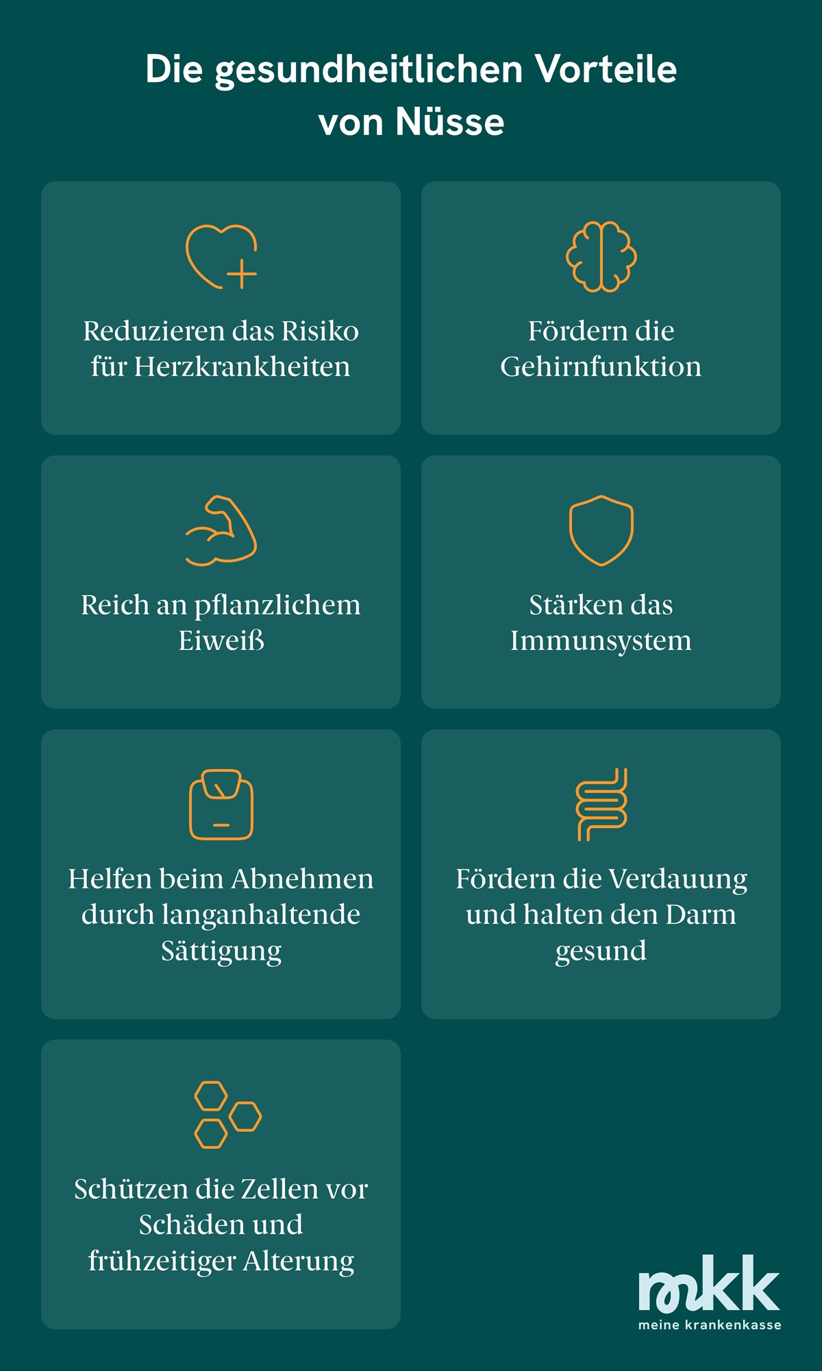 Nüsse sind echte Superfoods! Sie liefern wertvolle Nährstoffe, stärken das Herz, das Gehirn und das Immunsystem. In gesundem Maße sind sie eine perfekte Ergänzung zu einer ausgewogenen Ernährung.