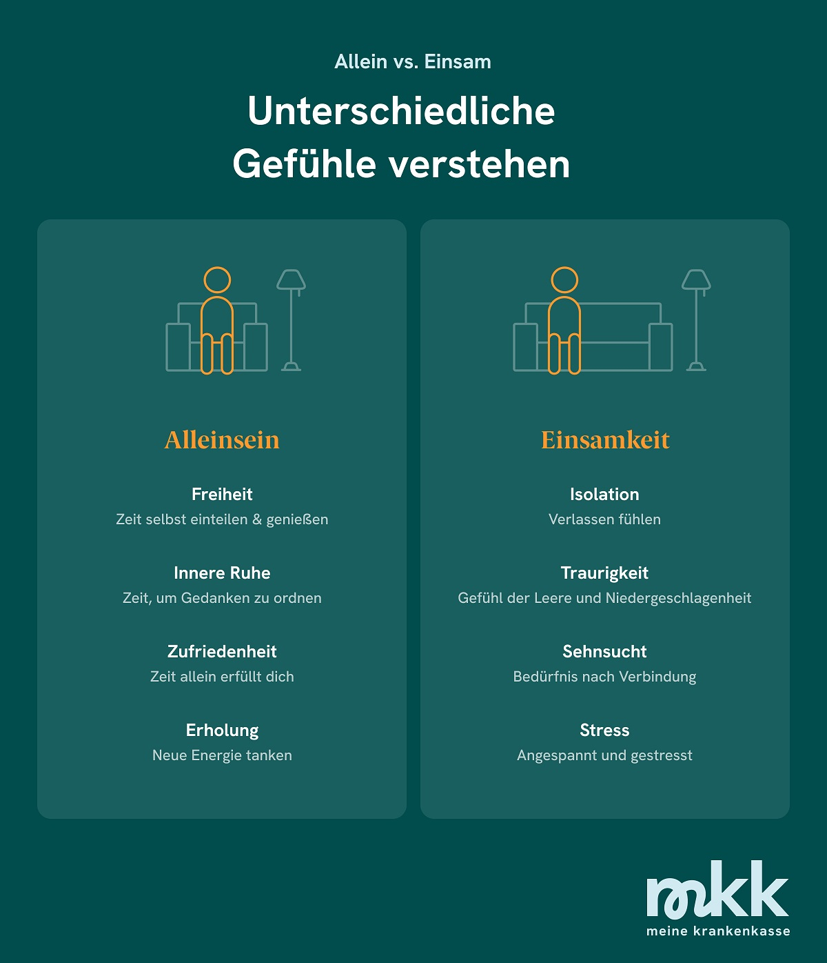 Alleinsein ist oft eine bewusste Entscheidung, während Einsamkeit ein Gefühl ist, das entsteht, wenn soziale Kontakte fehlen. Es ist wichtig, auf dieses Gefühl zu achten und den sozialen Austausch zu suchen, wenn Einsamkeit belastend wird.