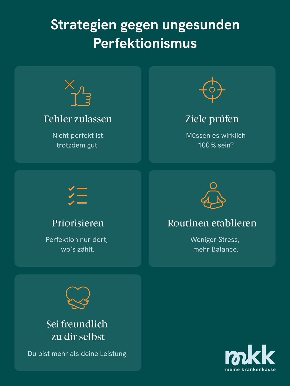 Entscheidend ist deshalb der Umgang mit Perfektionismus: Wer lernt, zwischen gesundem Ehrgeiz und übertriebenem Kontrollzwang zu unterscheiden, kann die positiven Seiten nutzen, ohne an den negativen zu zerbrechen. Es geht nicht darum, Perfektionismus komplett abzulegen, sondern ihn in ein gesundes Maß zu bringen.
