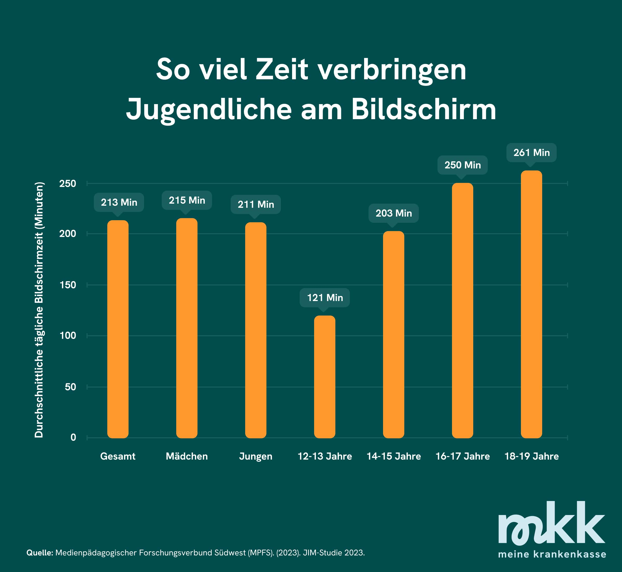 Durchschnittliche Bildschirmzeit von Jugendlichen in 2023