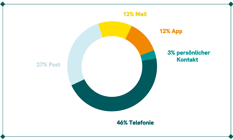 Das Telefon blieb 2024 das wichtigste Kommunikationsmittel – 1.405.760 Beratungsgespräche wurden darüber geführt. Das war fast die Hälfte aller Kontakte. An Briefen erreichte uns eine Anzahl von 831.256, was 27 Prozent aller Kontakte ausmacht. Die Briefpost ist also noch immer der zweitwichtigste Kommunikationsweg.