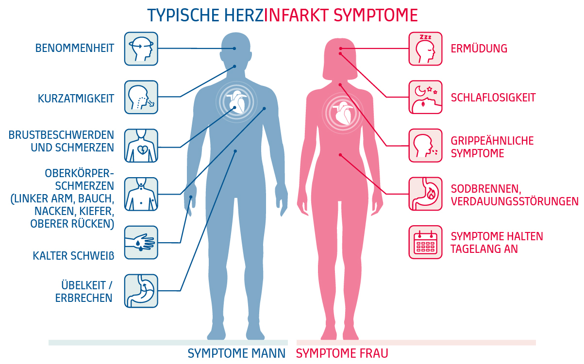 Zu den unterschiedlichen Symptomen kommt es, weil die Nervenfasern des Herzens den Schmerz bei Frauen und Männern unterschiedlich weiterleiten. Viele Herzinfarkt-Todesfälle bei Frauen ließen sich vermeiden, würden die Symptome richtig gedeutet.